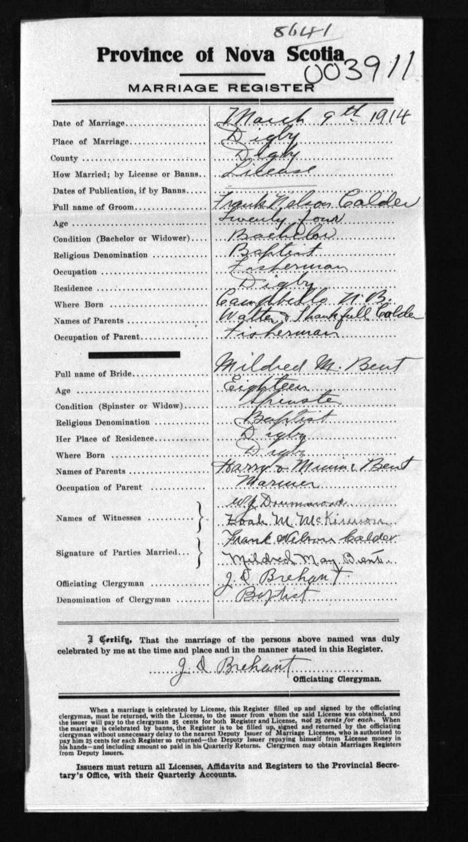 Registration: Year: 1914 number: 3911