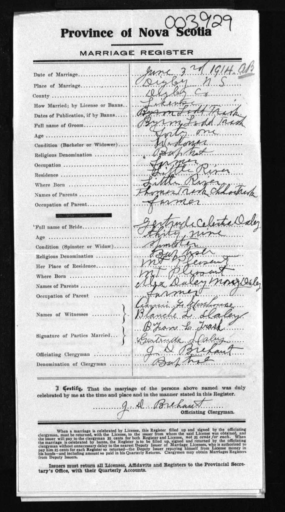 Registration: Year: 1914 number: 3929
