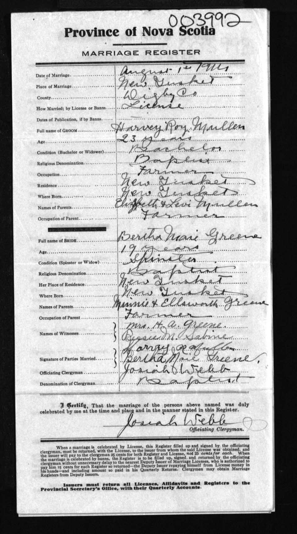 Registration: Year: 1914 number: 3992