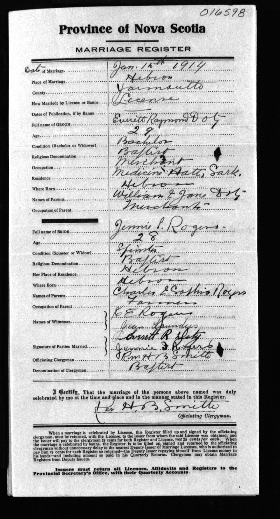 Registration: Year: 1914 number: 16598