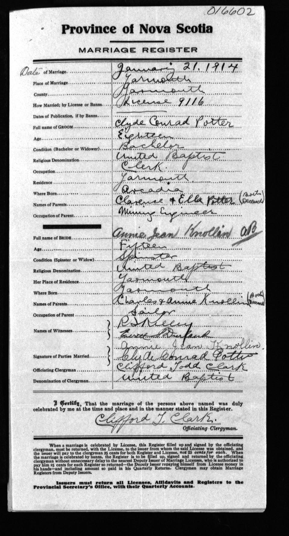 Registration: Year: 1914 number: 16602