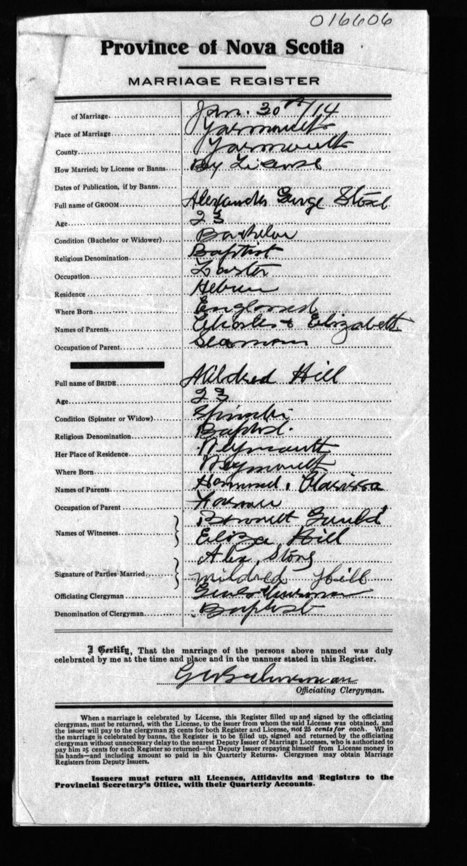 Registration: Year: 1914 number: 16606