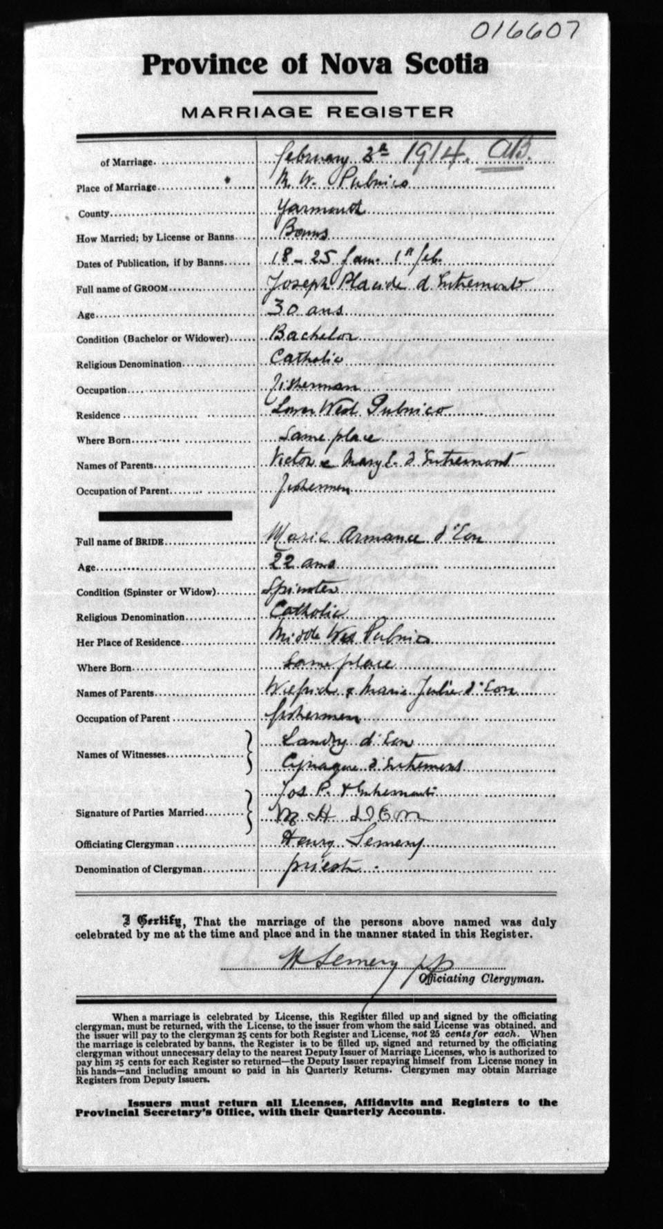 Registration: Year: 1914 number: 16607