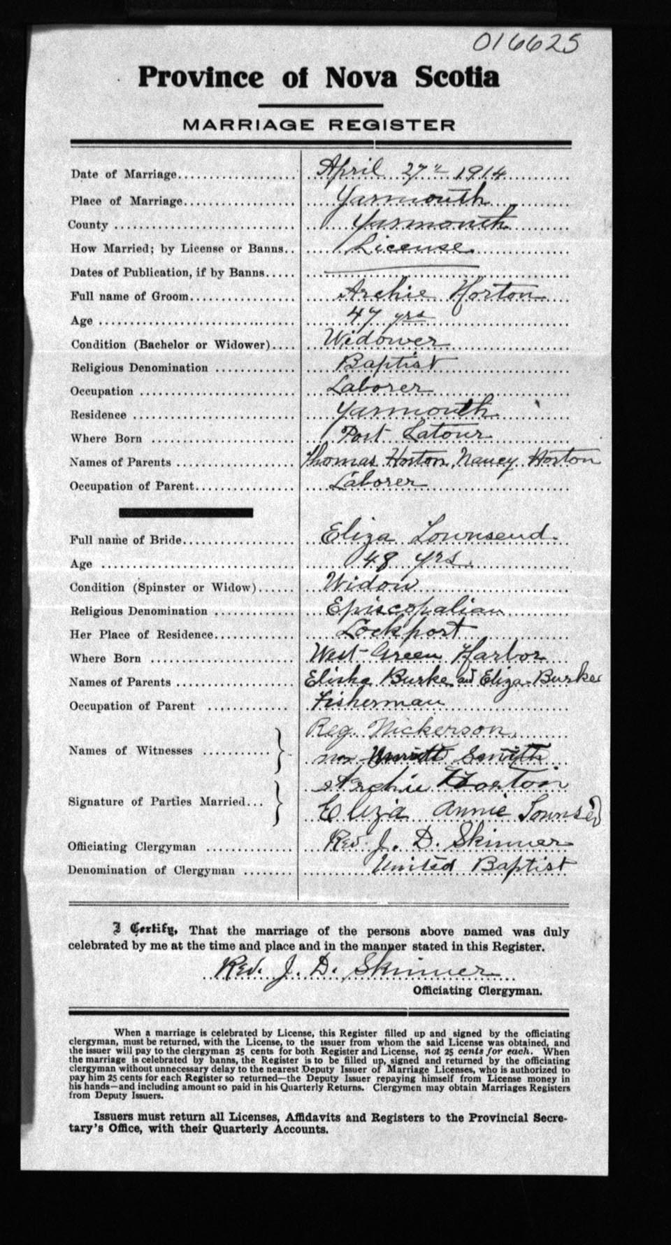 Registration: Year: 1914 number: 16625