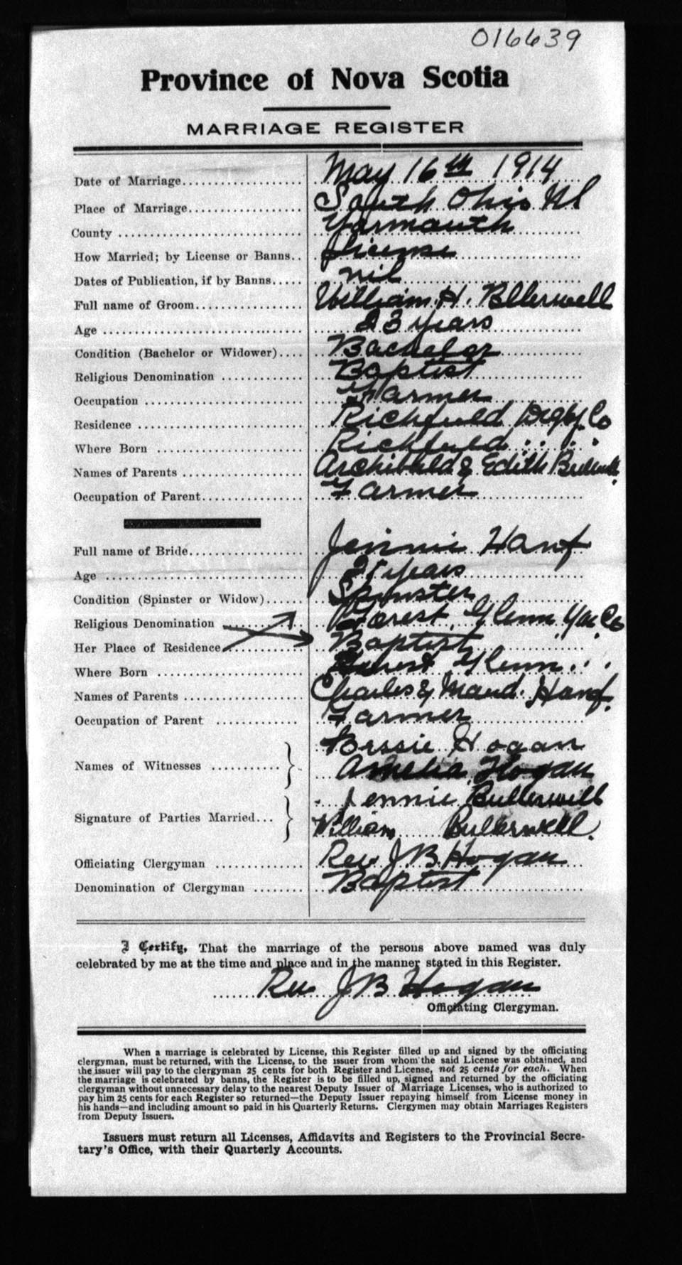 Registration: Year: 1914 number: 16639