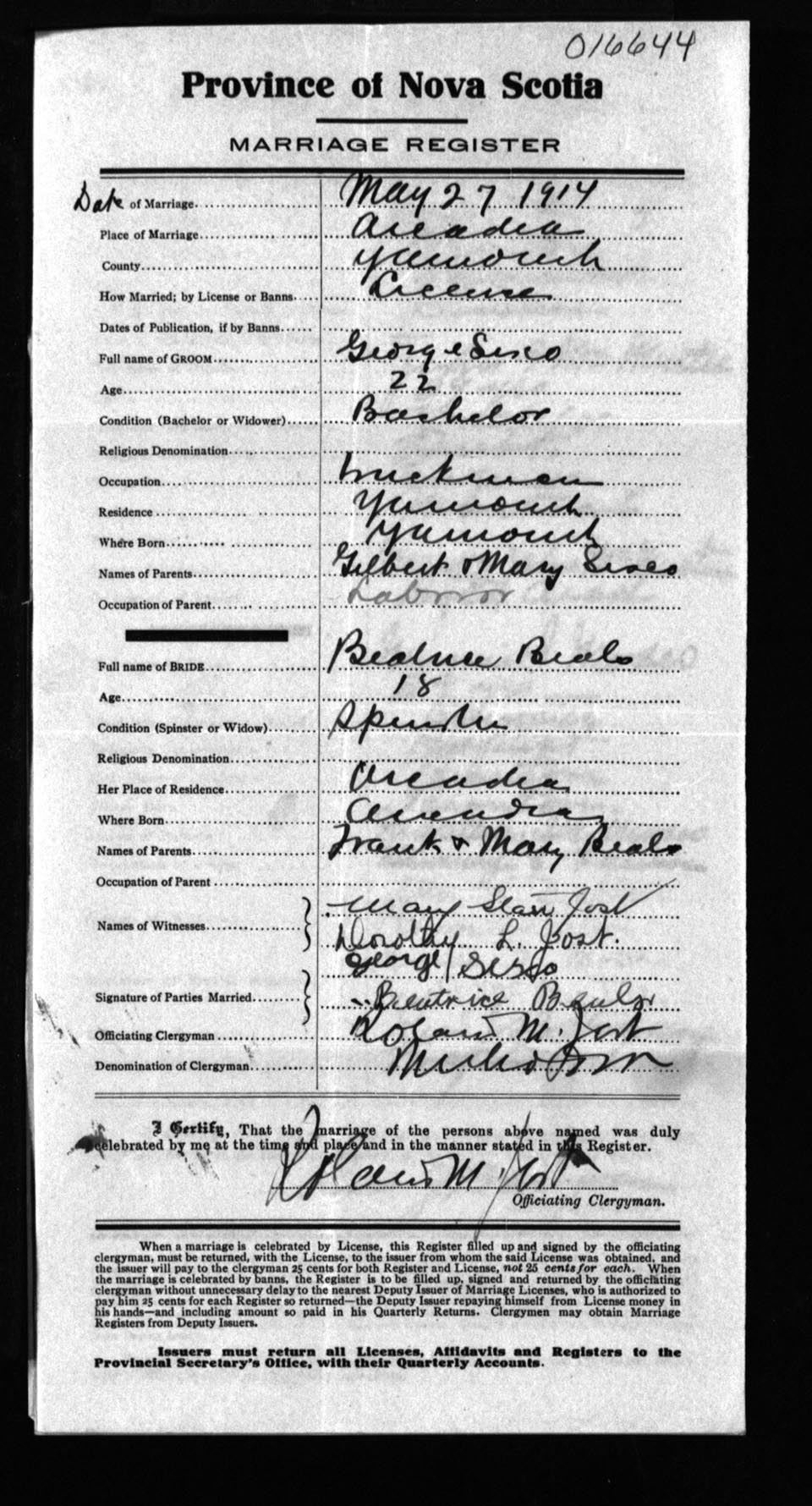 Registration: Year: 1914 number: 16644
