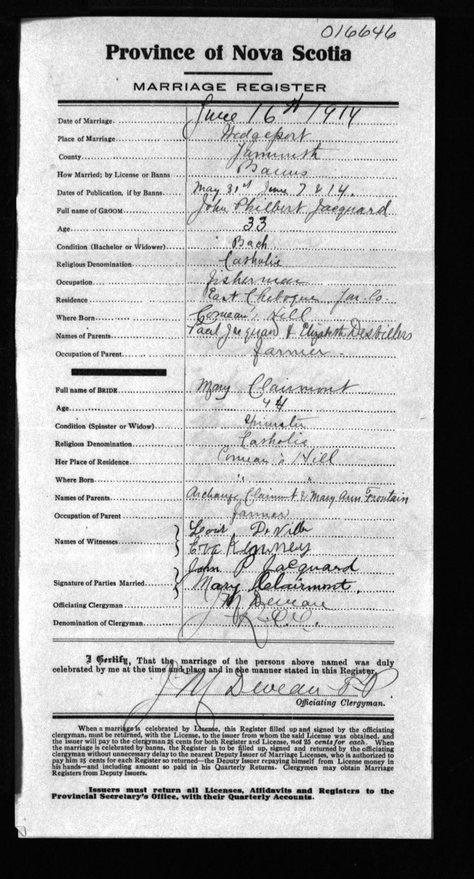 Registration: Year: 1914 number: 16646