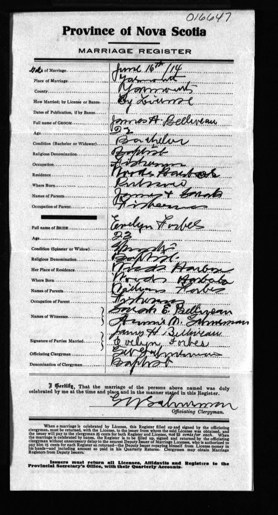 Registration: Year: 1914 number: 16647