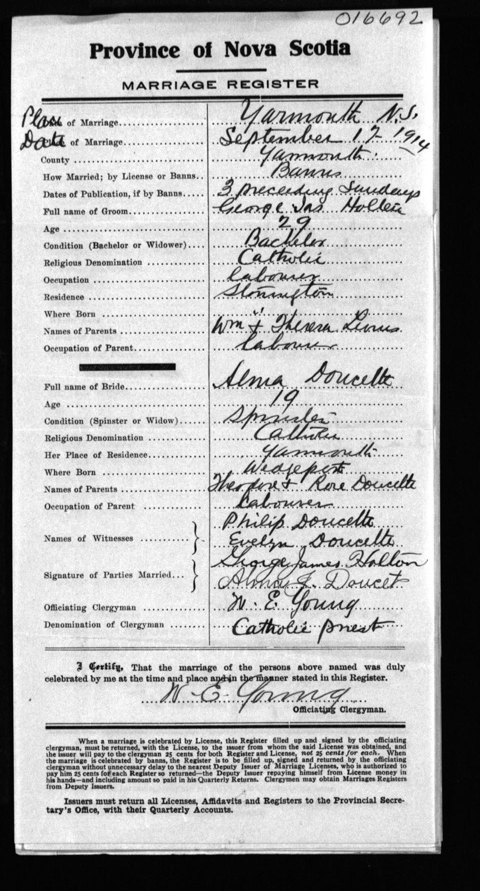 Registration: Year: 1914 number: 16692