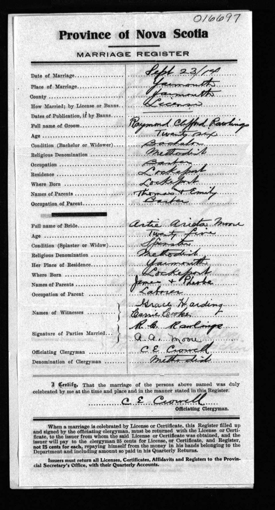 Registration: Year: 1914 number: 16697