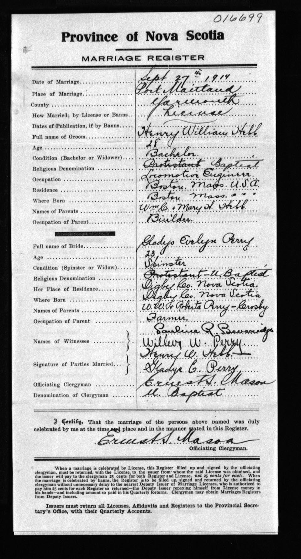 Registration: Year: 1914 number: 16699