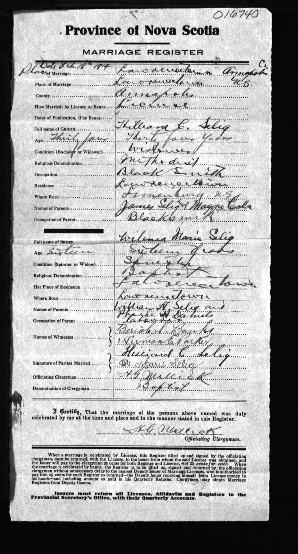Registration: Year: 1914 number: 16740