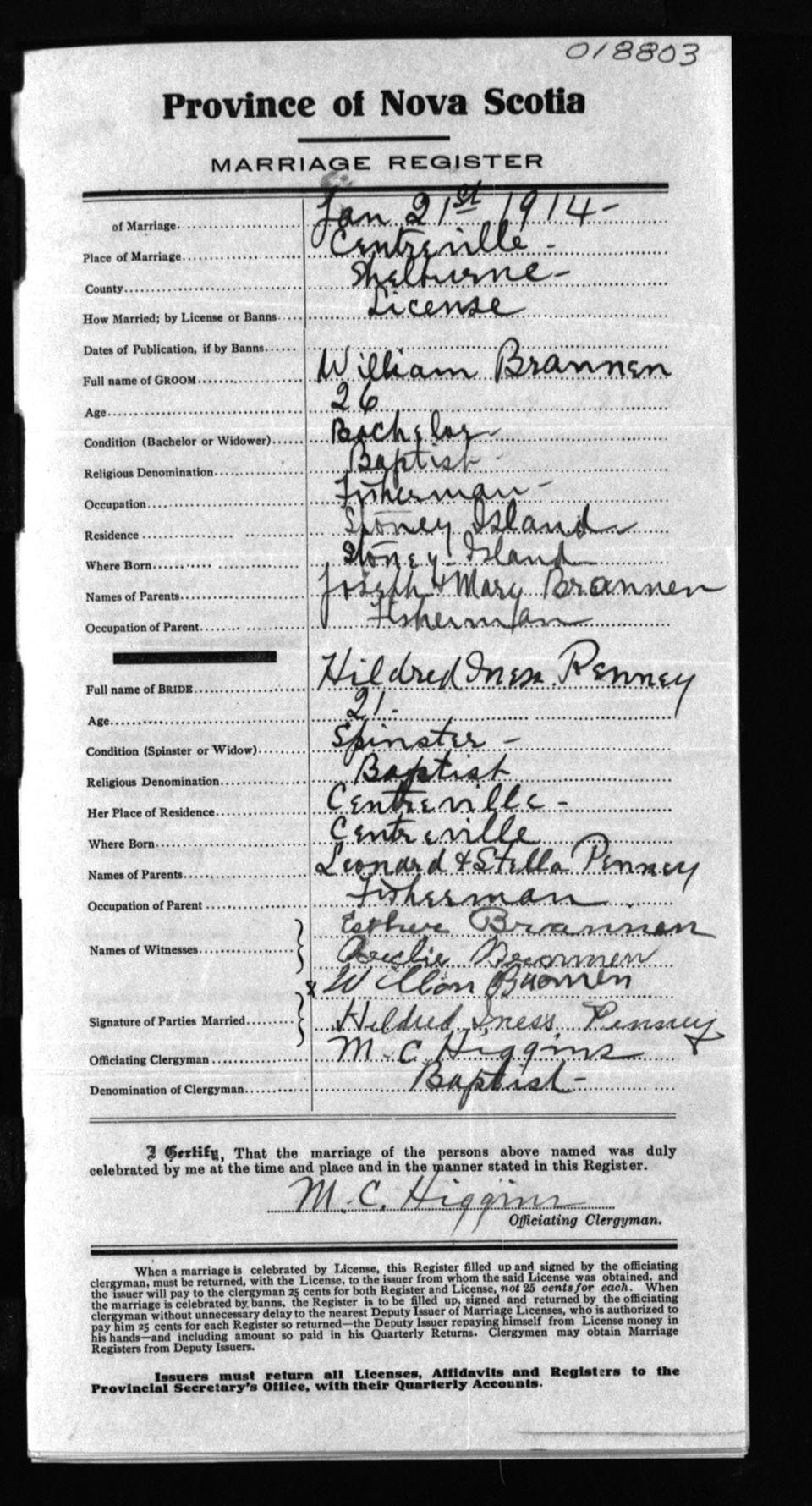 Registration: Year: 1914 number: 18803