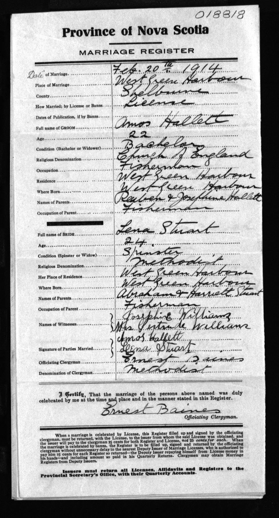 Registration: Year: 1914 number: 18818