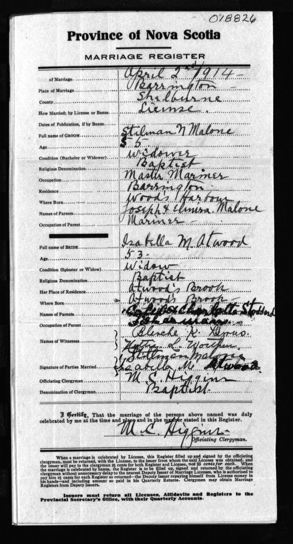 Registration: Year: 1914 number: 18826