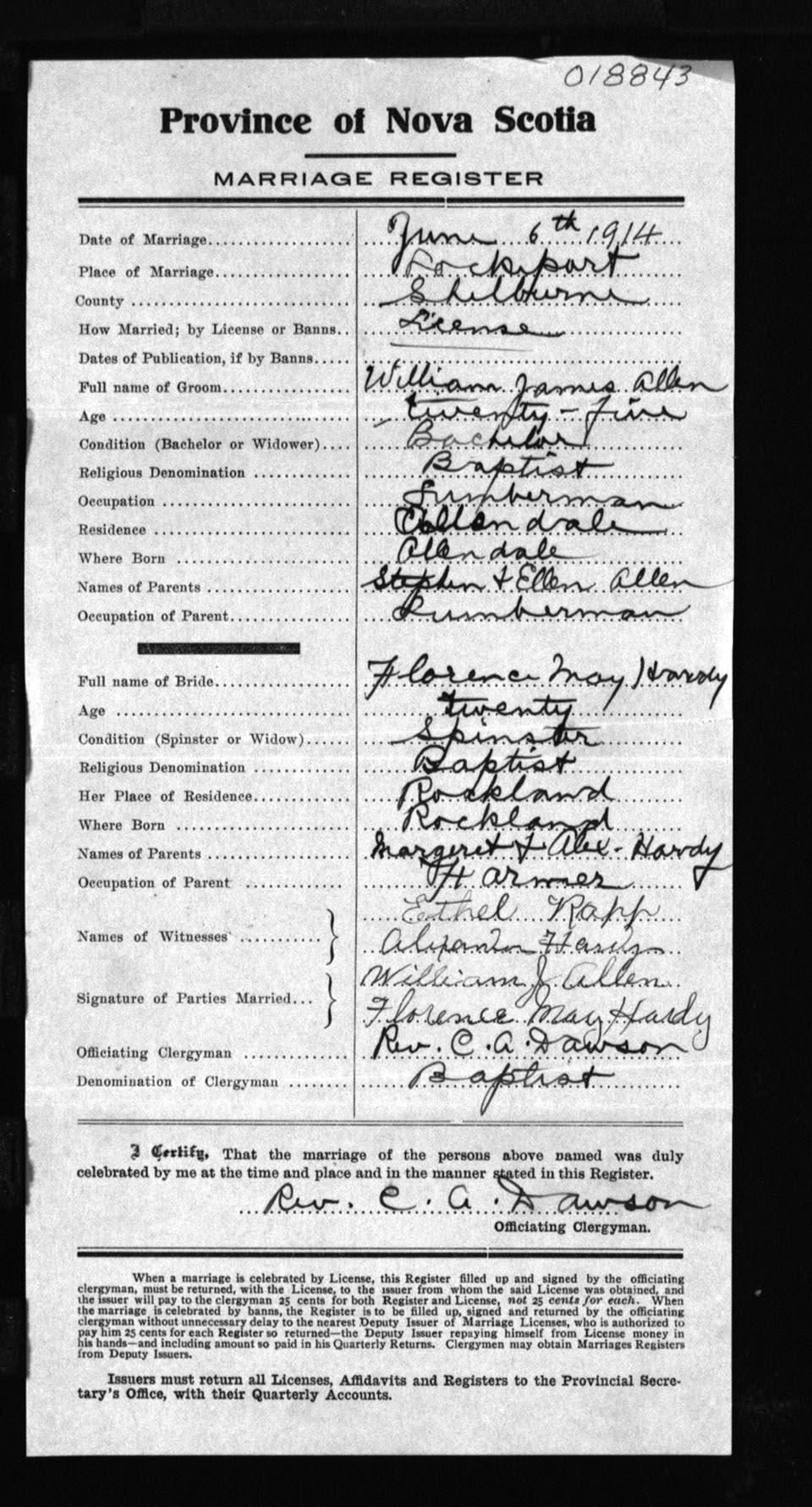 Registration: Year: 1914 number: 18843