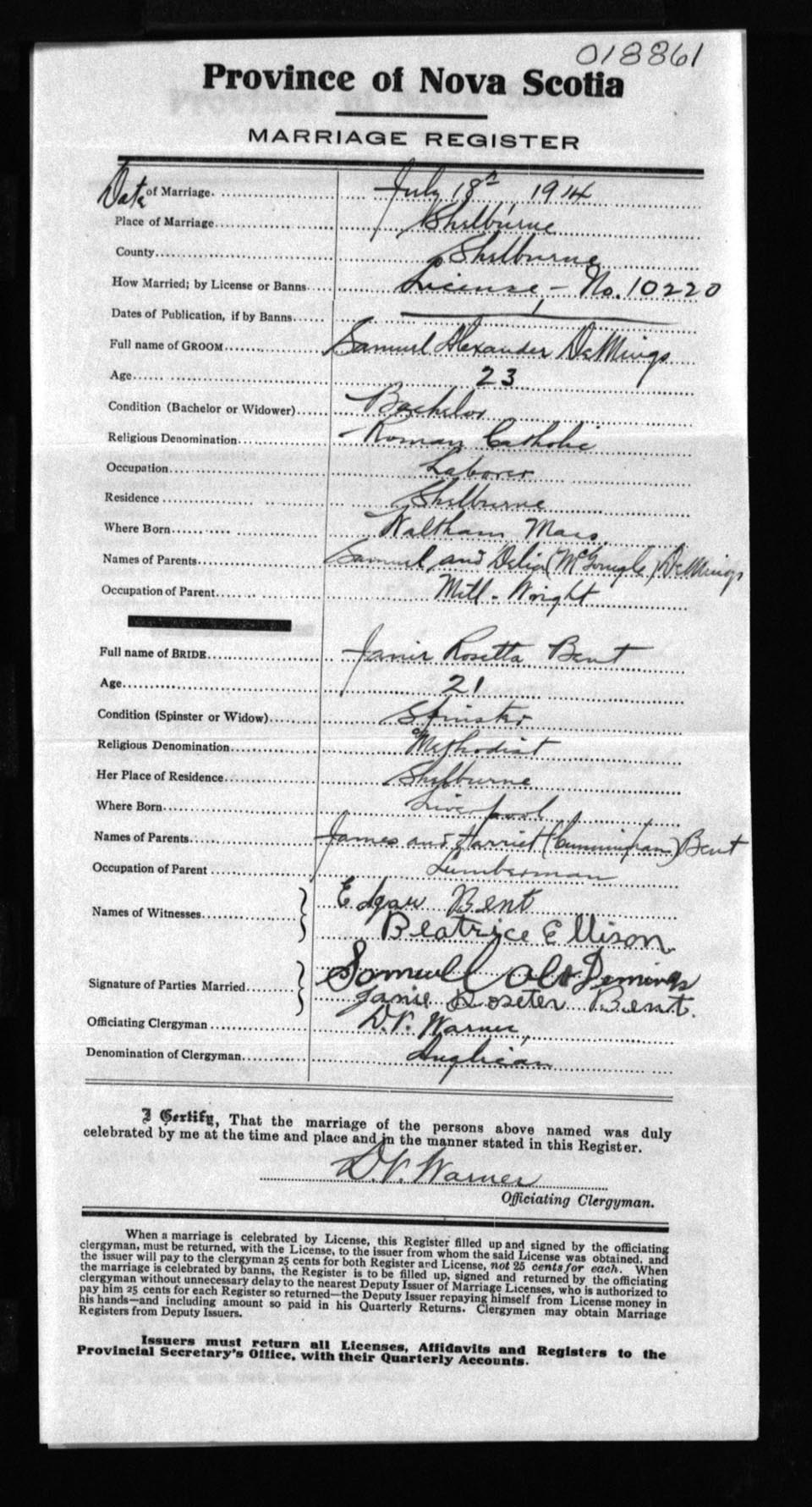 Registration: Year: 1914 number: 18861