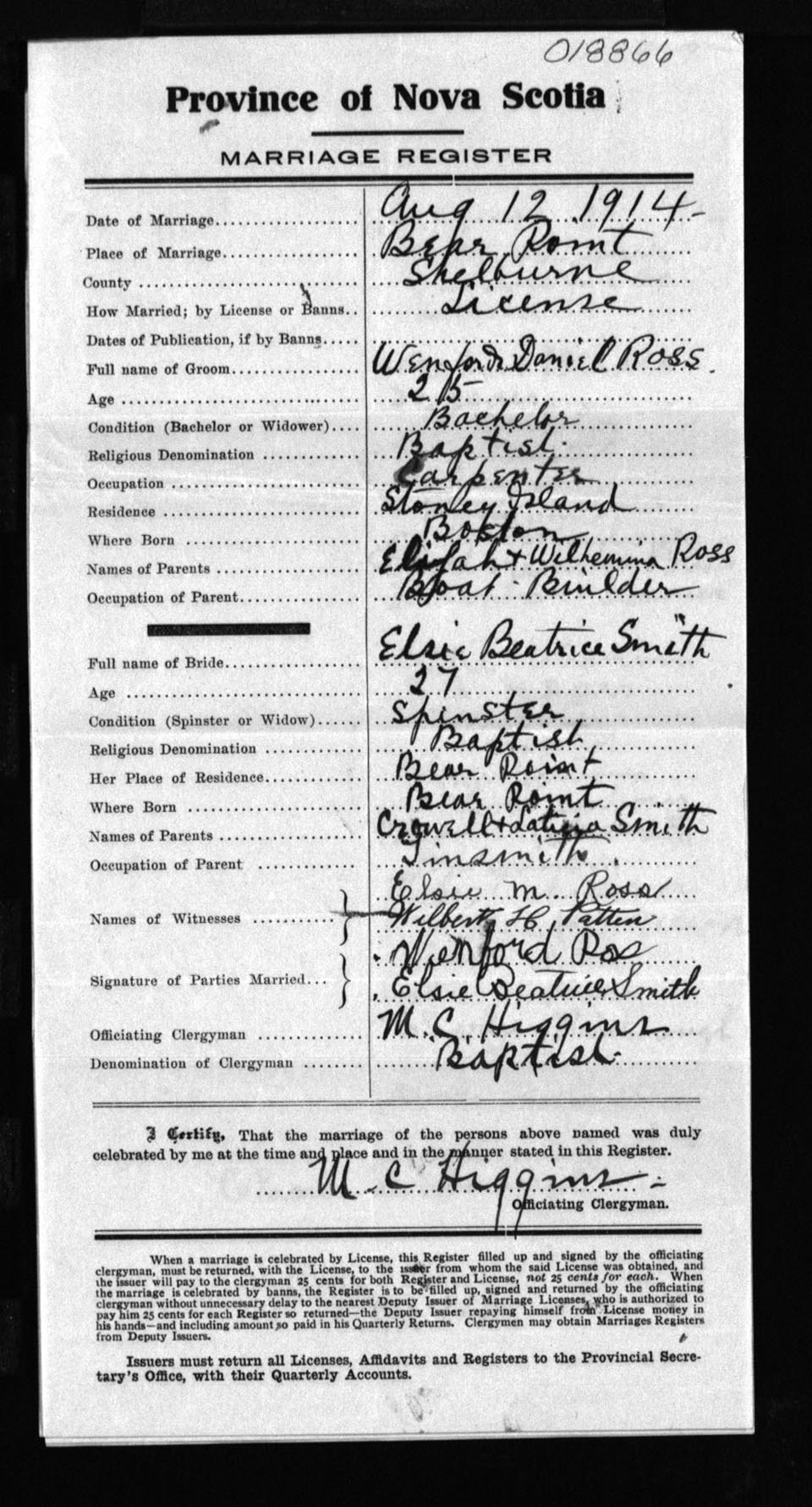 Registration: Year: 1914 number: 18866