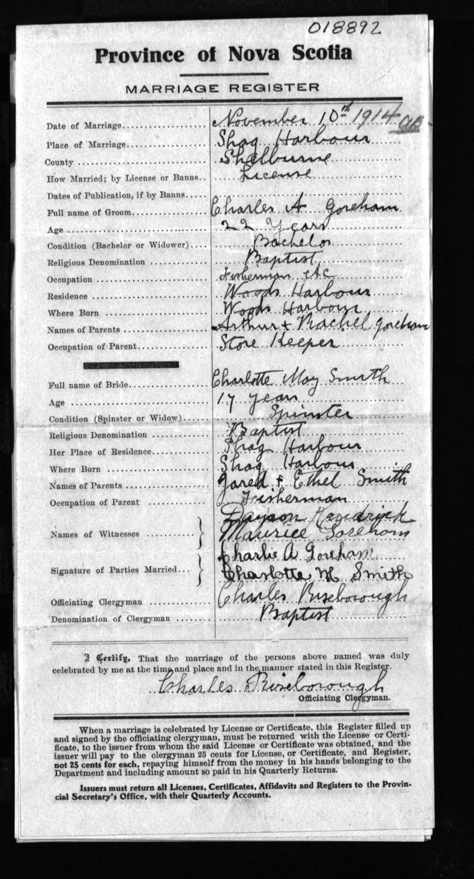 Registration: Year: 1914 number: 18892