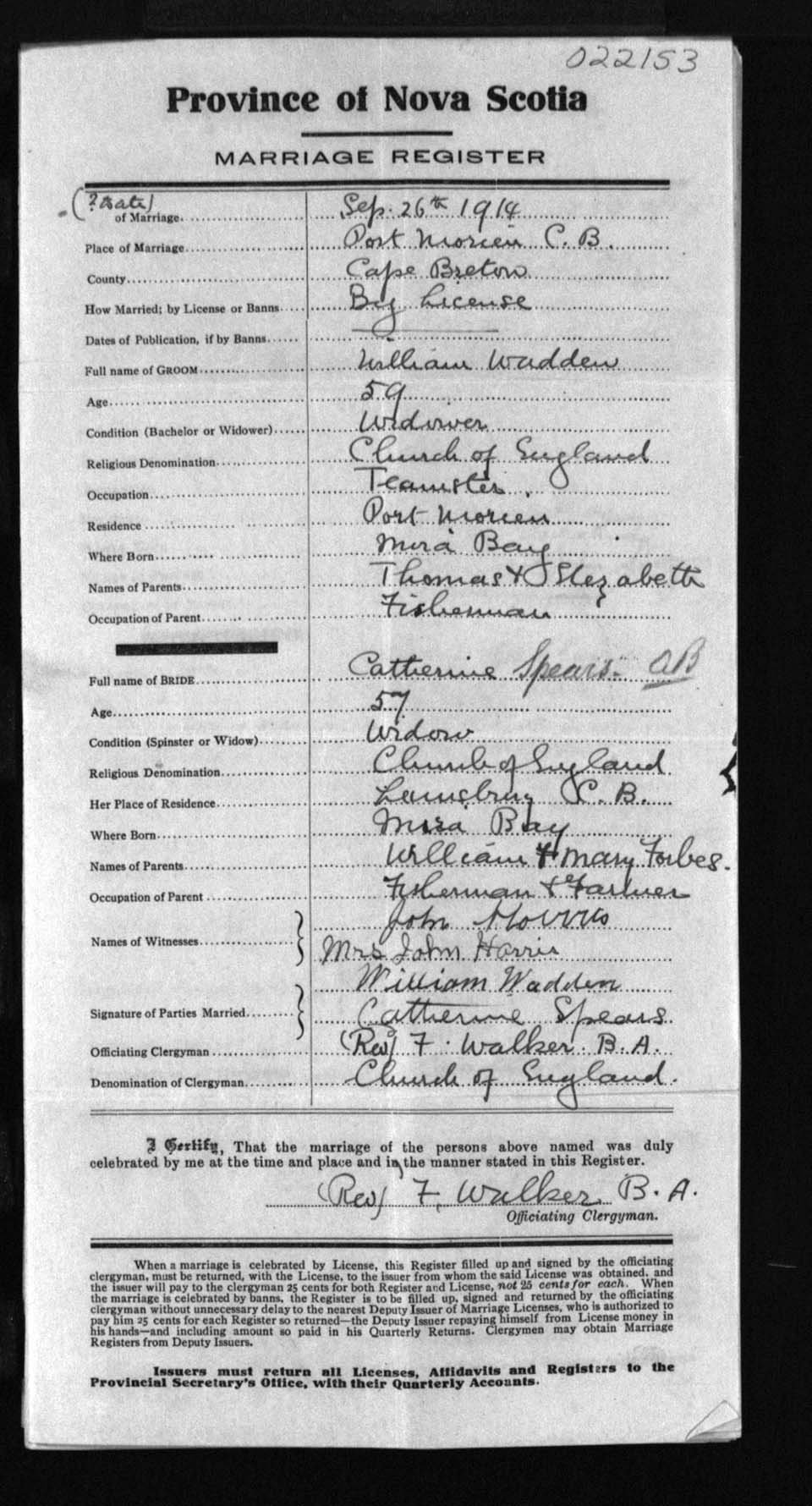 Registration: Year: 1914 number: 22153