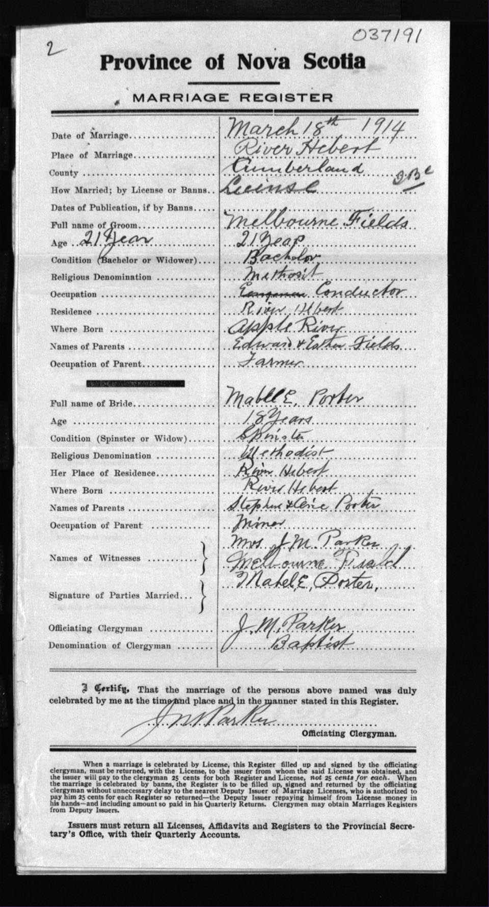 Registration: Year: 1914 number: 37191