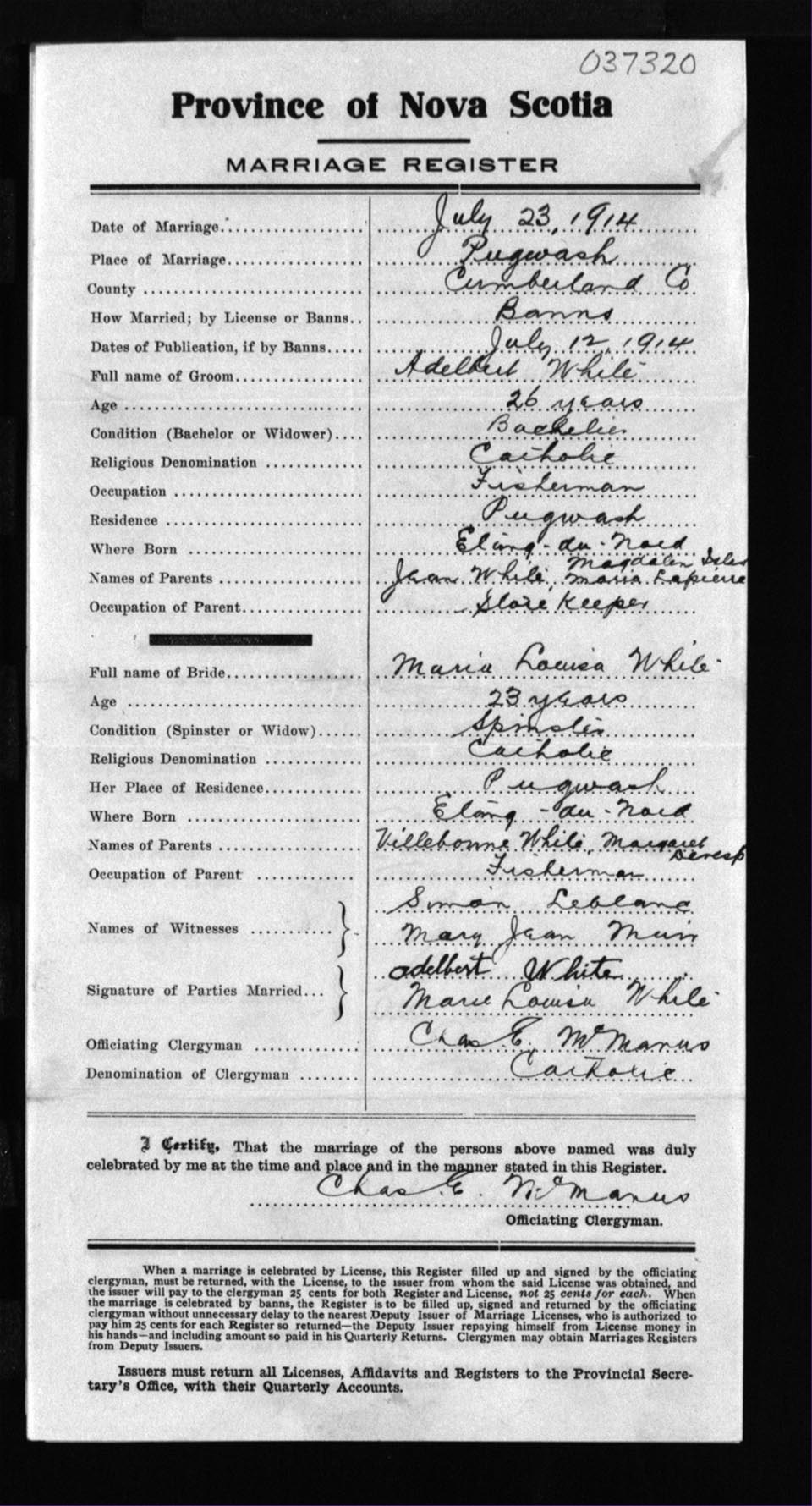 Registration: Year: 1914 number: 37320