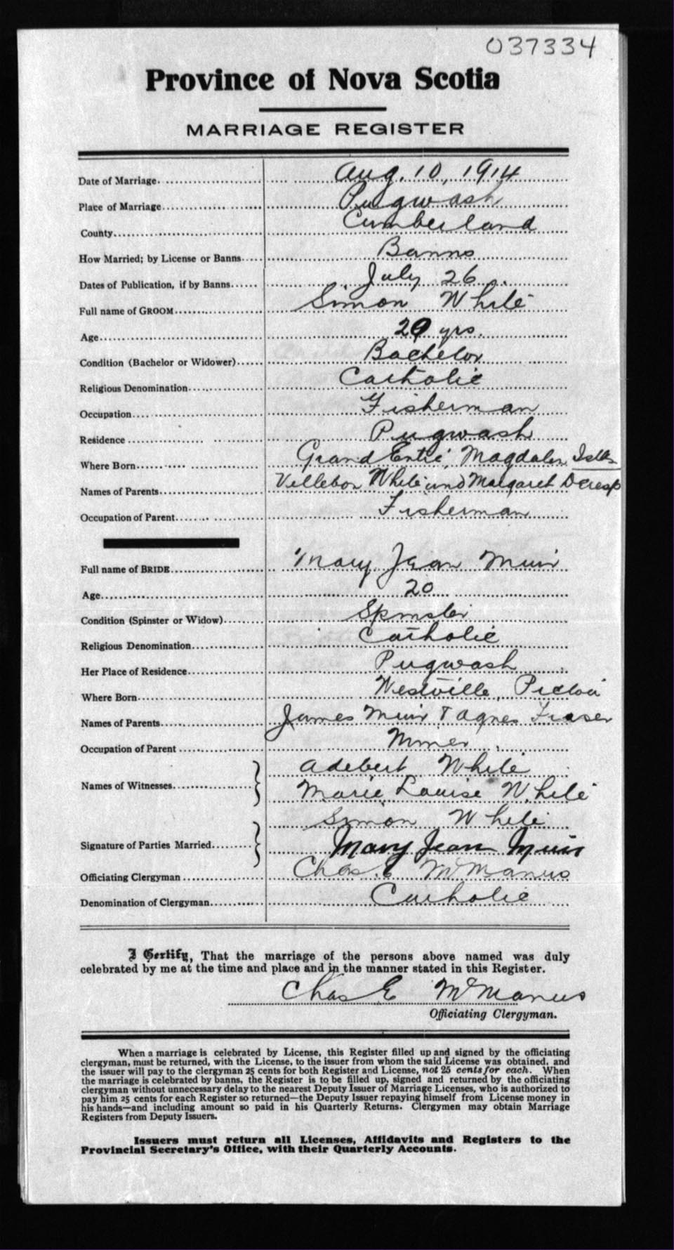 Registration: Year: 1914 number: 37334