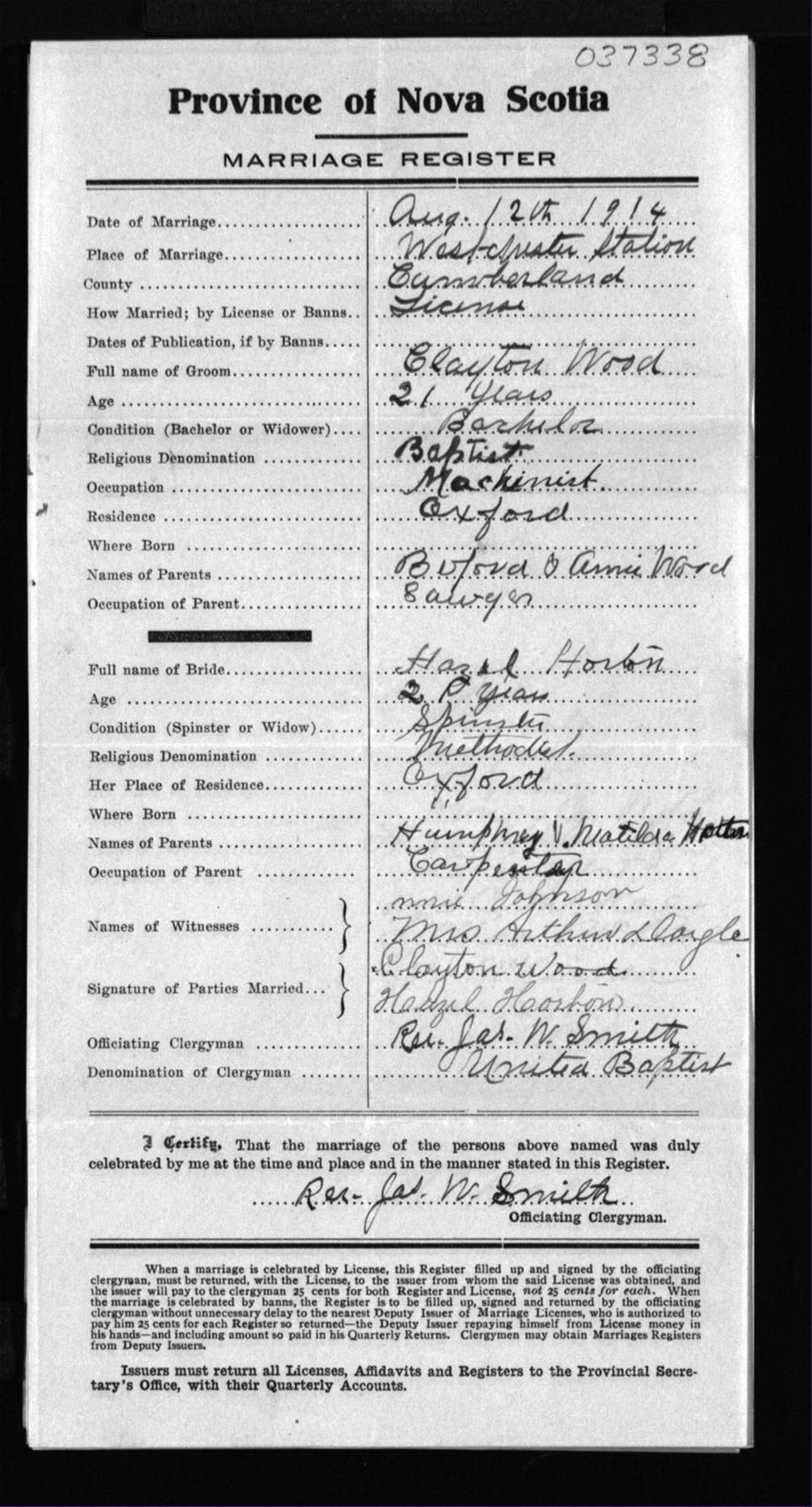 Registration: Year: 1914 number: 37338