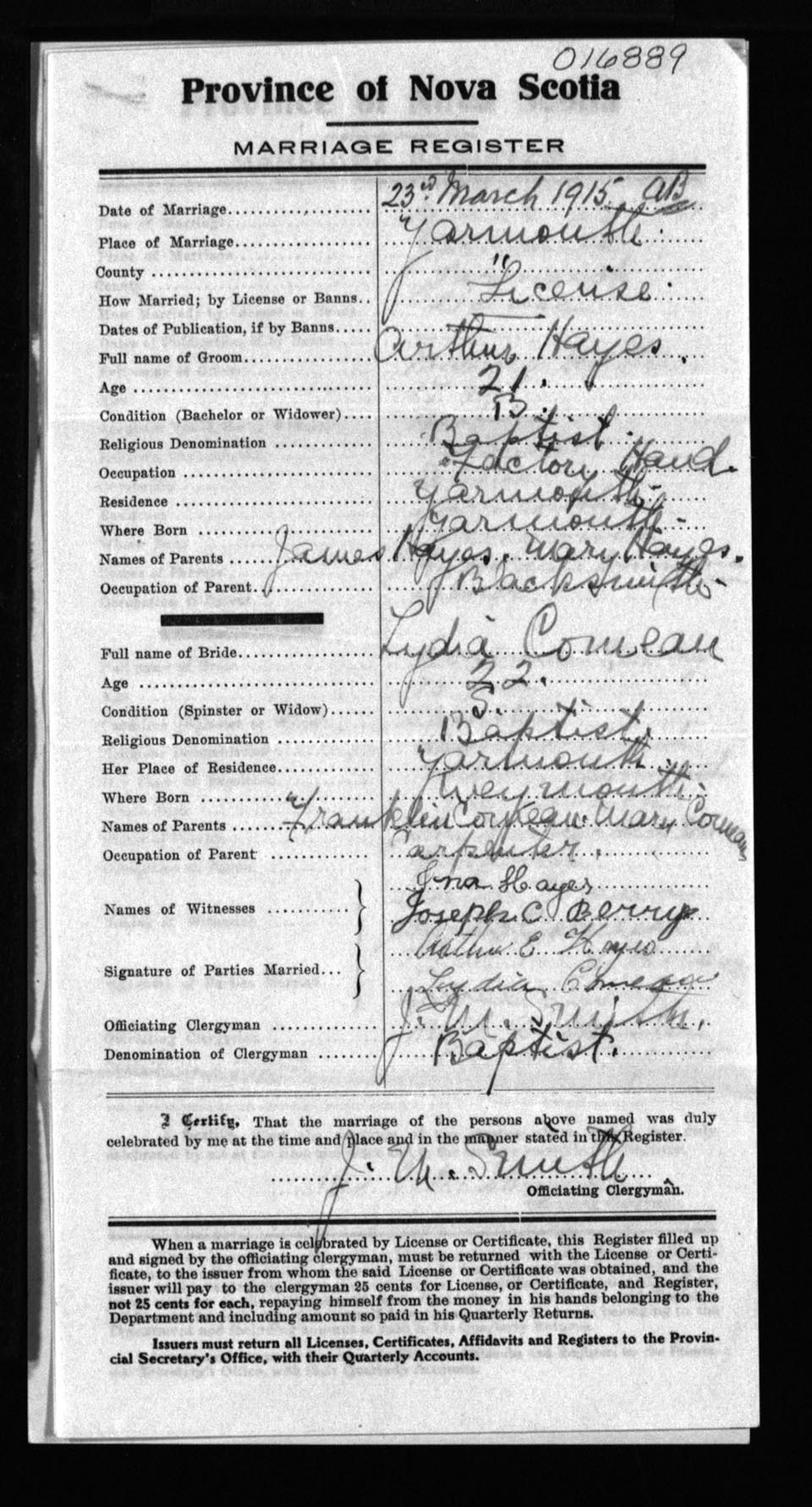 Registration: Year: 1915 number: 16889