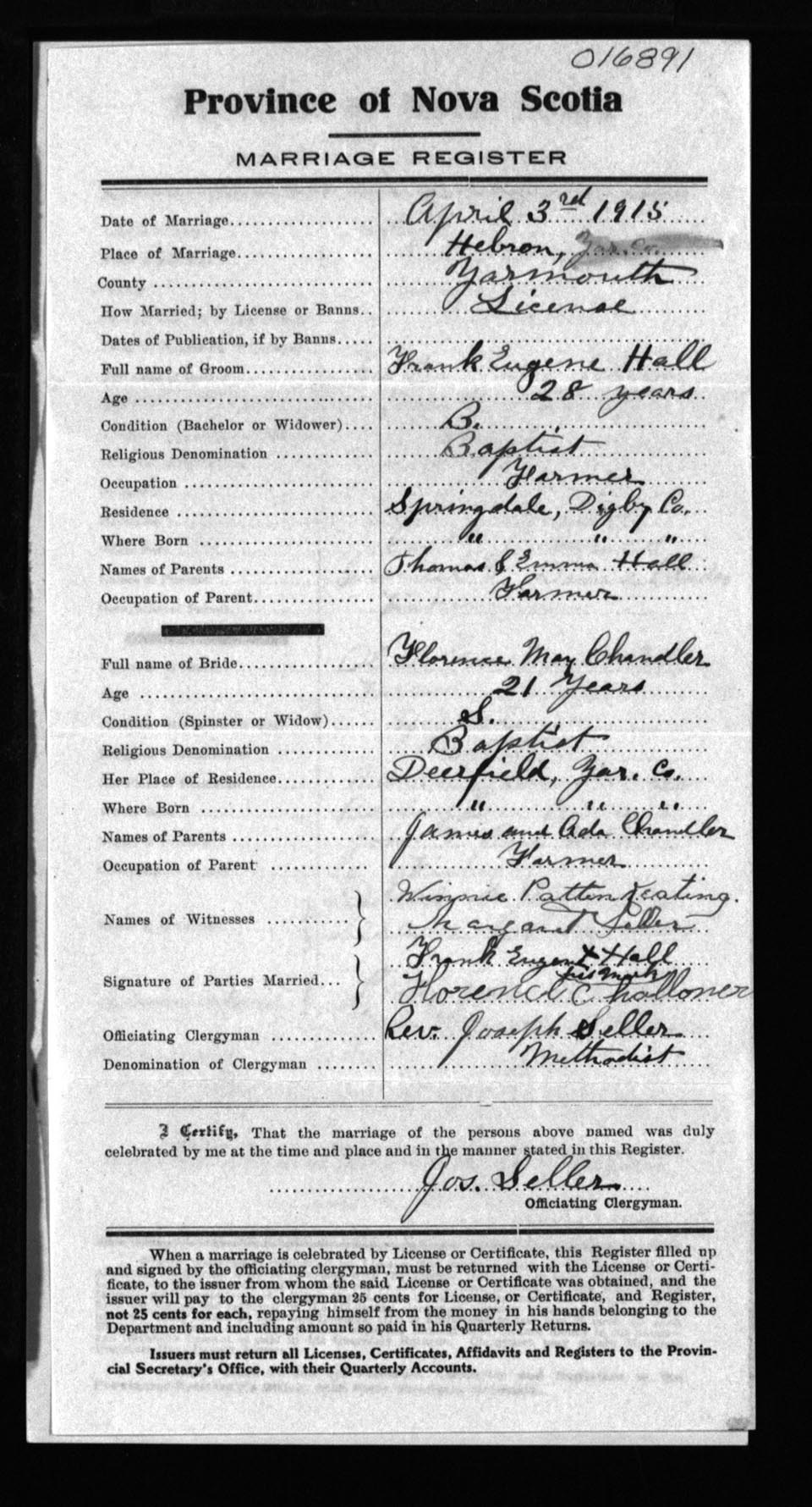 Registration: Year: 1915 number: 16891