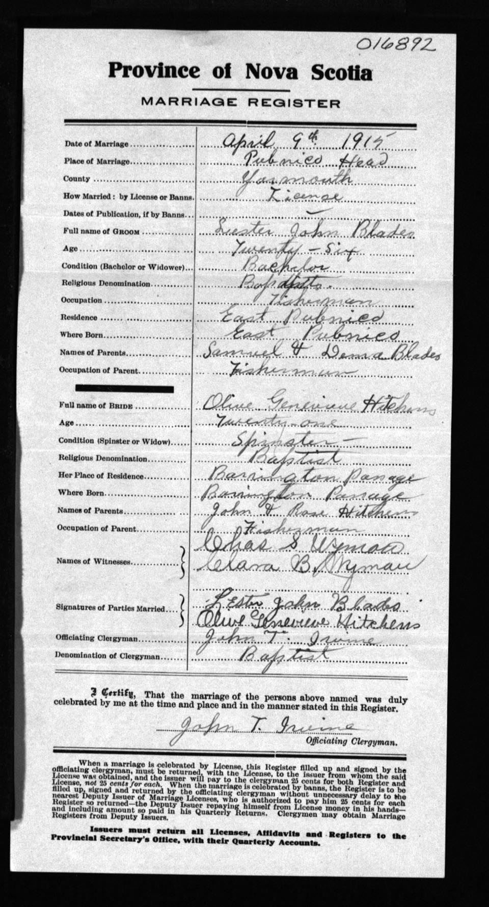 Registration: Year: 1915 number: 16892
