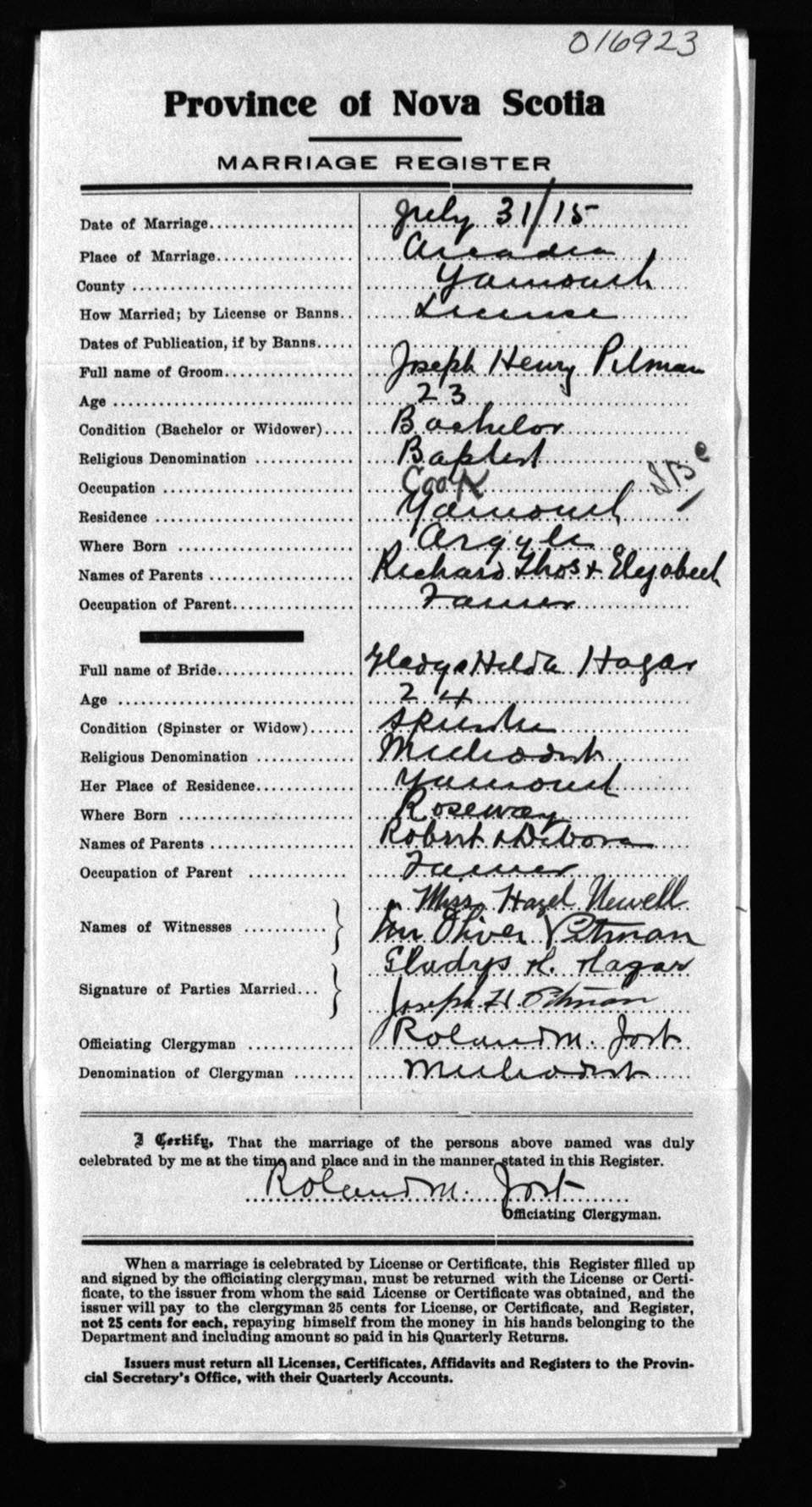 Registration: Year: 1915 number: 16923