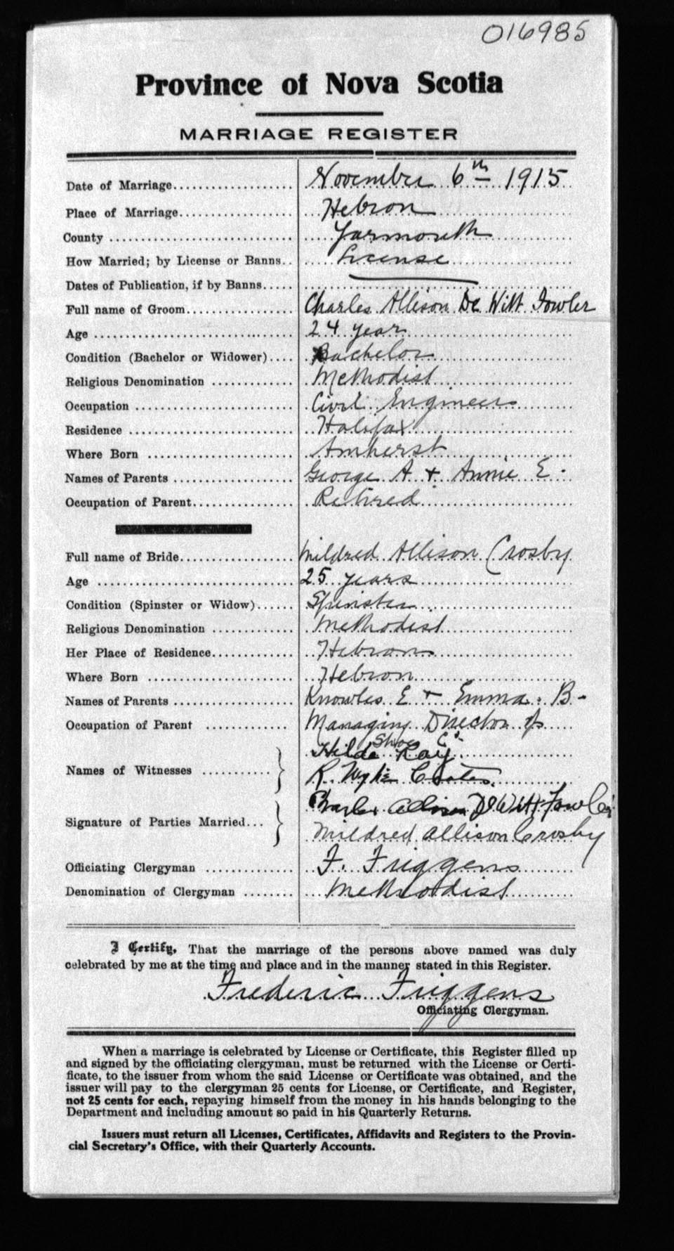Registration: Year: 1915 number: 16985