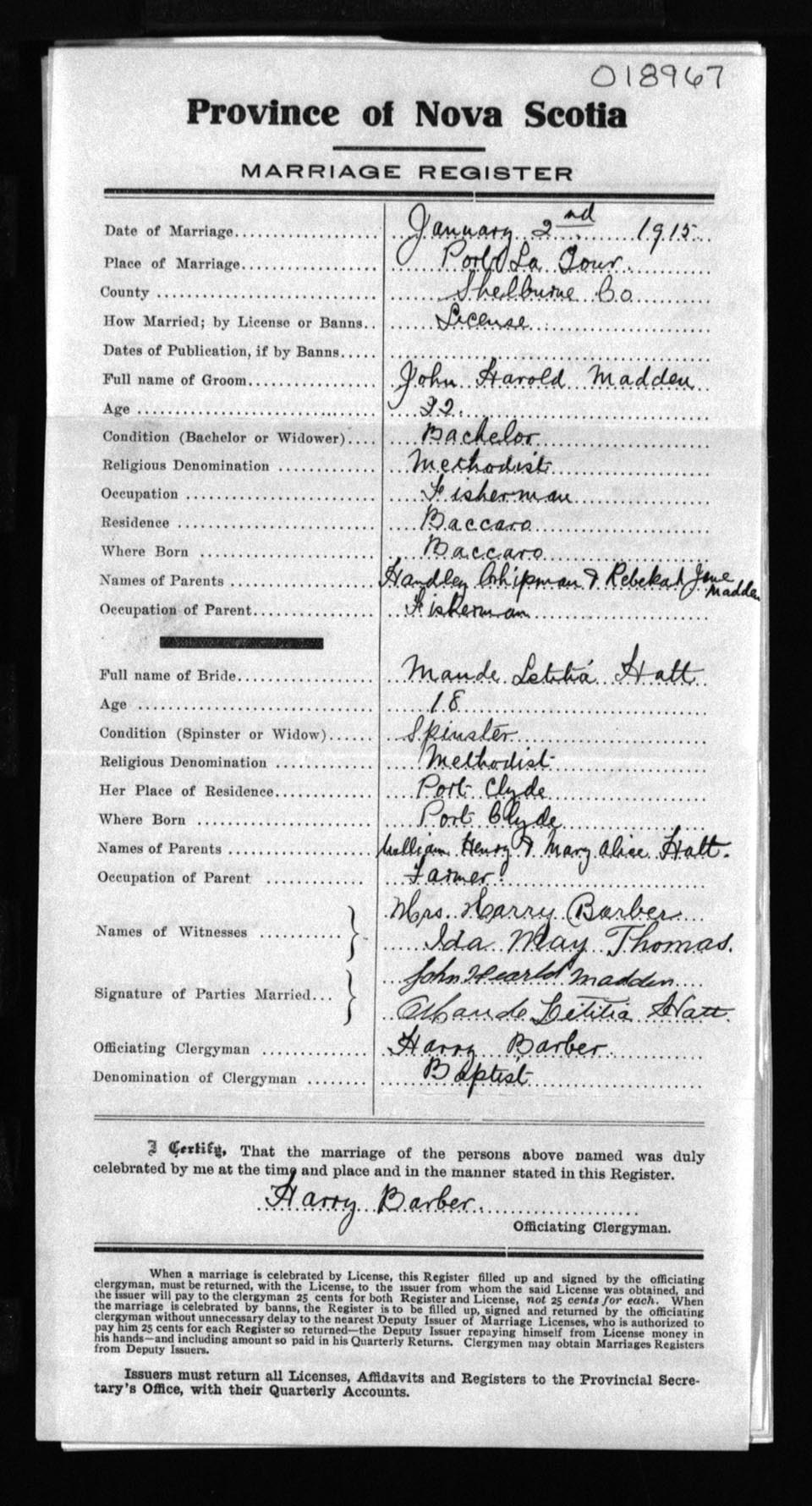 Registration: Year: 1915 number: 18967