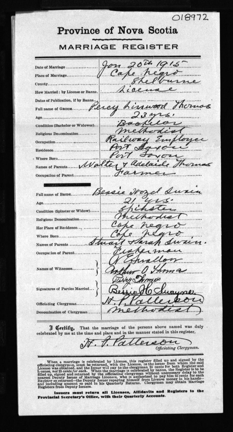 Registration: Year: 1915 number: 18972