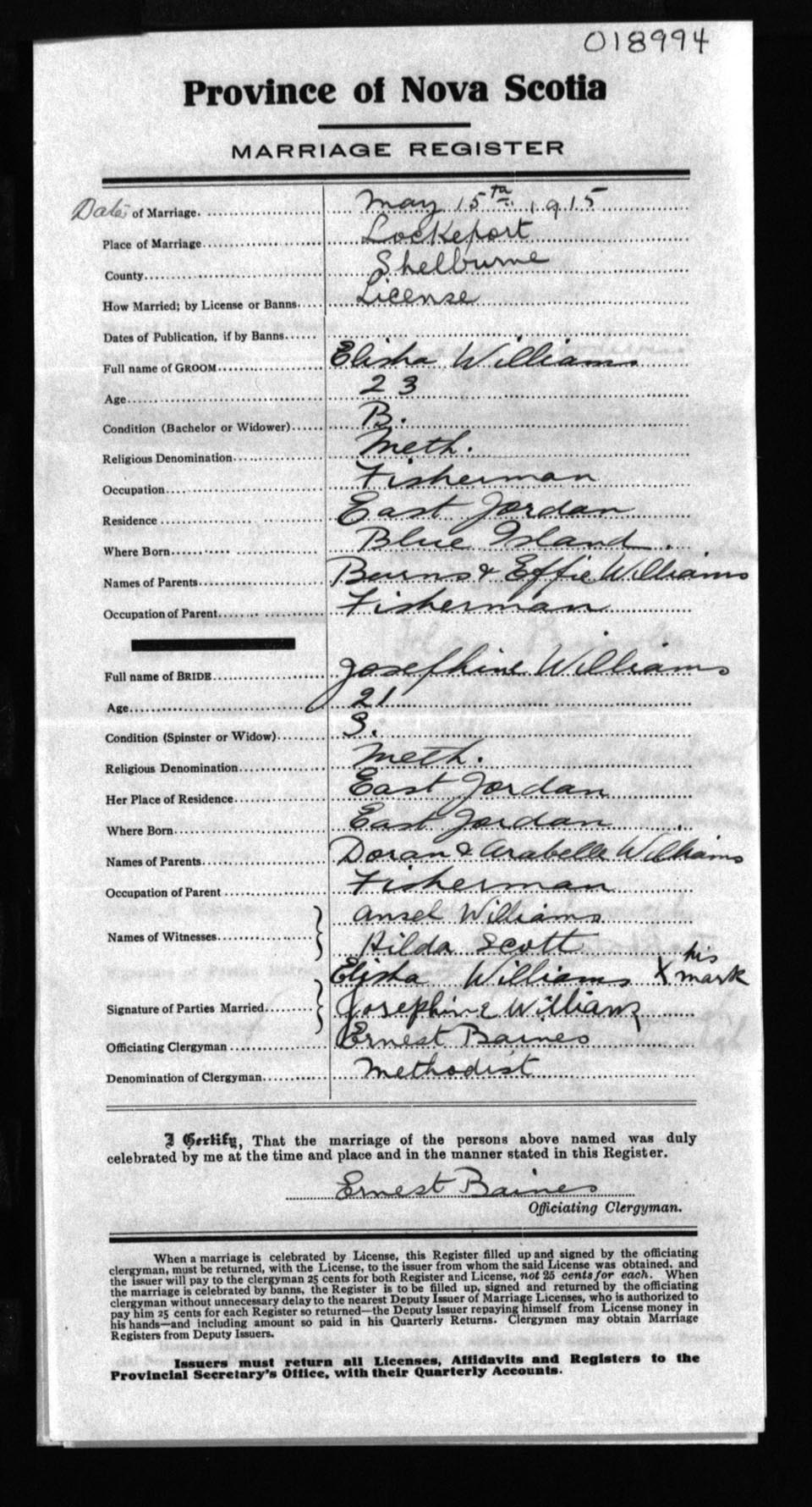 Registration: Year: 1915 number: 18994