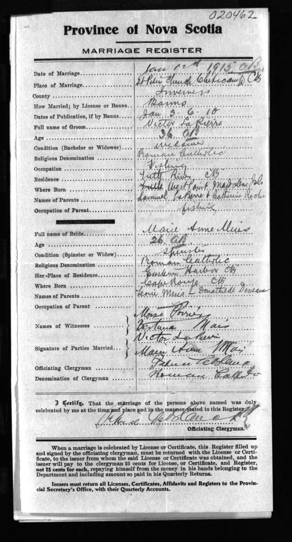 Registration: Year: 1915 number: 20462