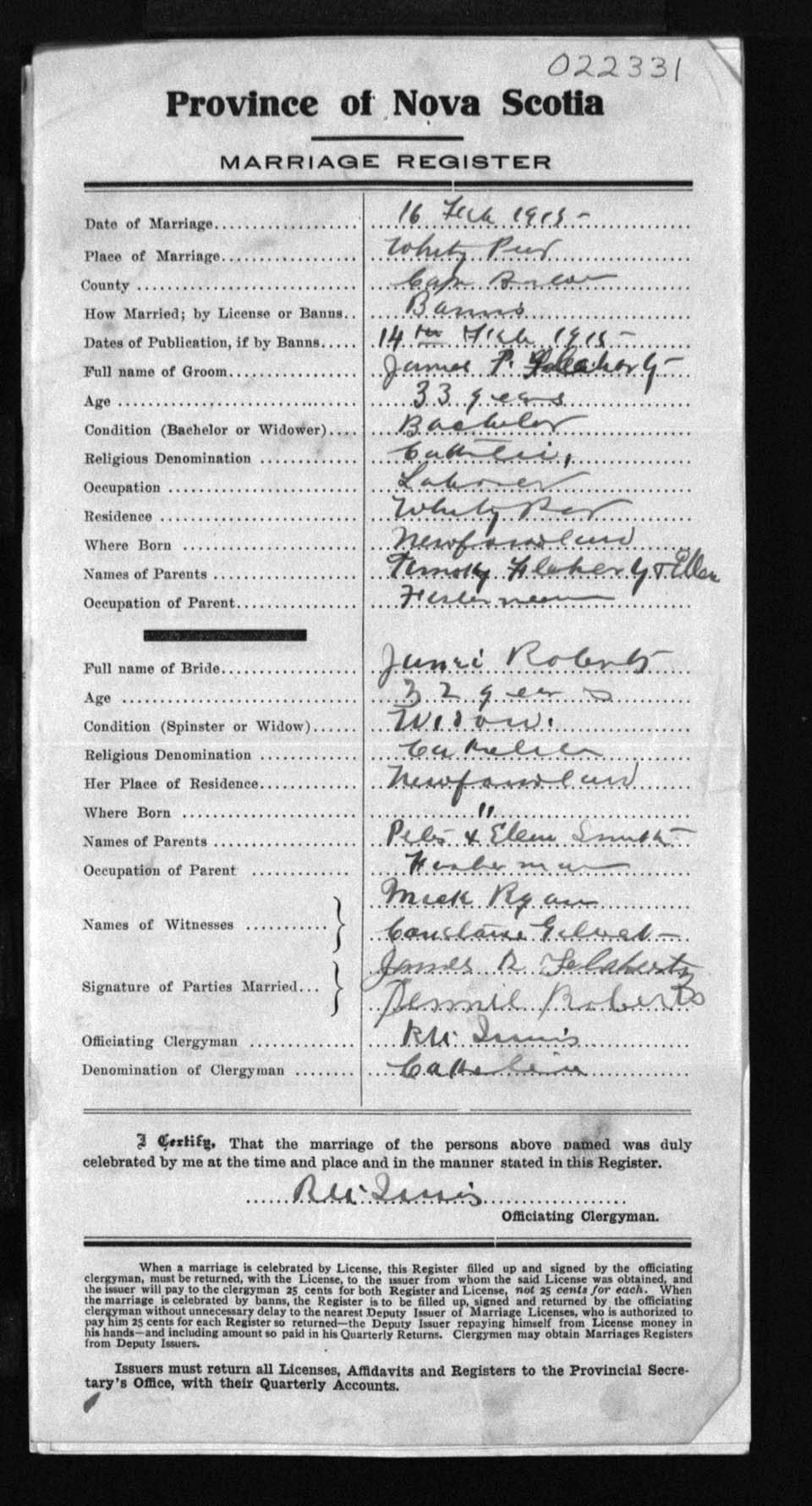 Registration: Year: 1915 number: 22331