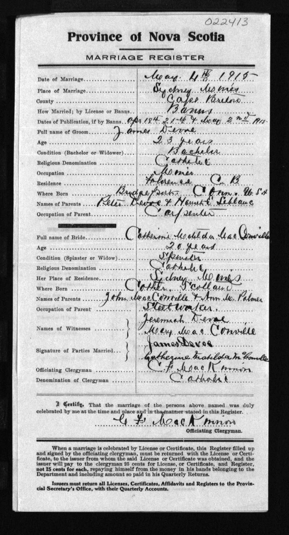 Registration: Year: 1915 number: 22413