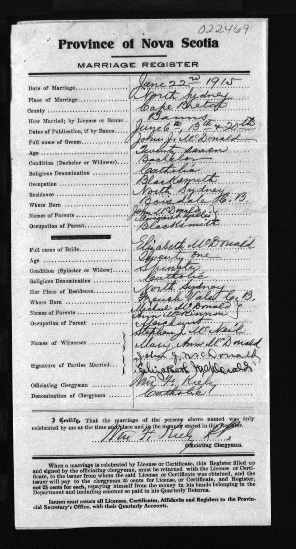 Registration: Year: 1915 number: 22469