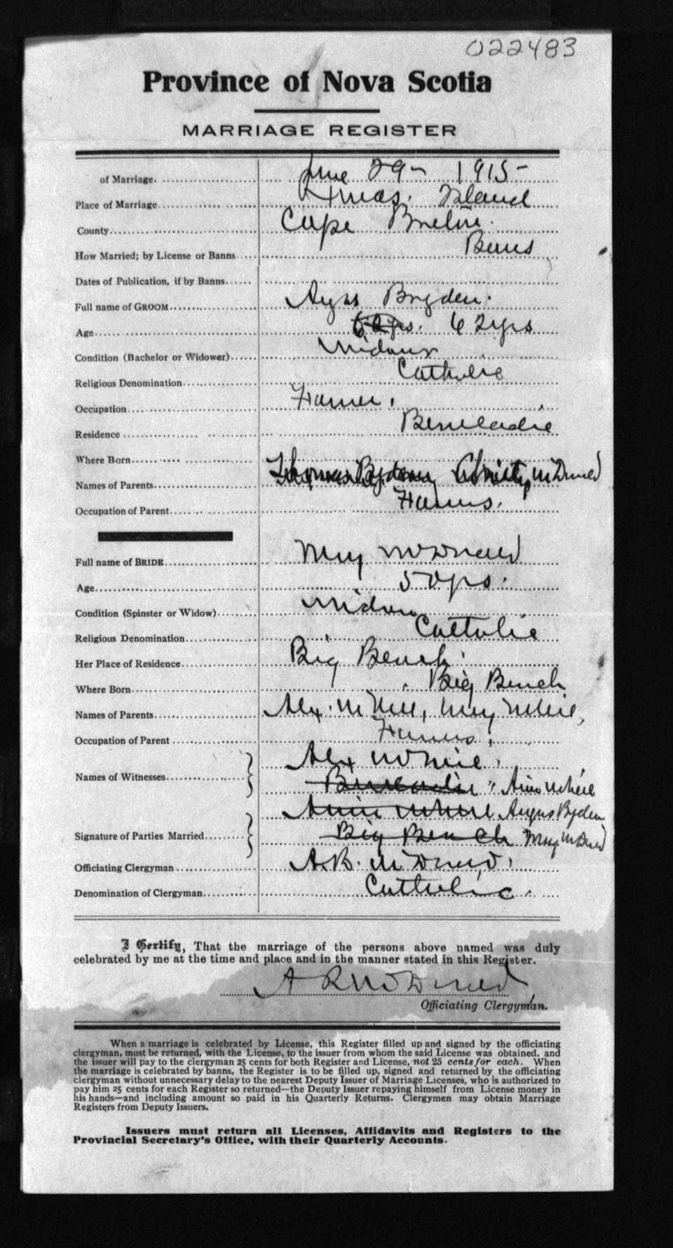 Registration: Year: 1915 number: 22483