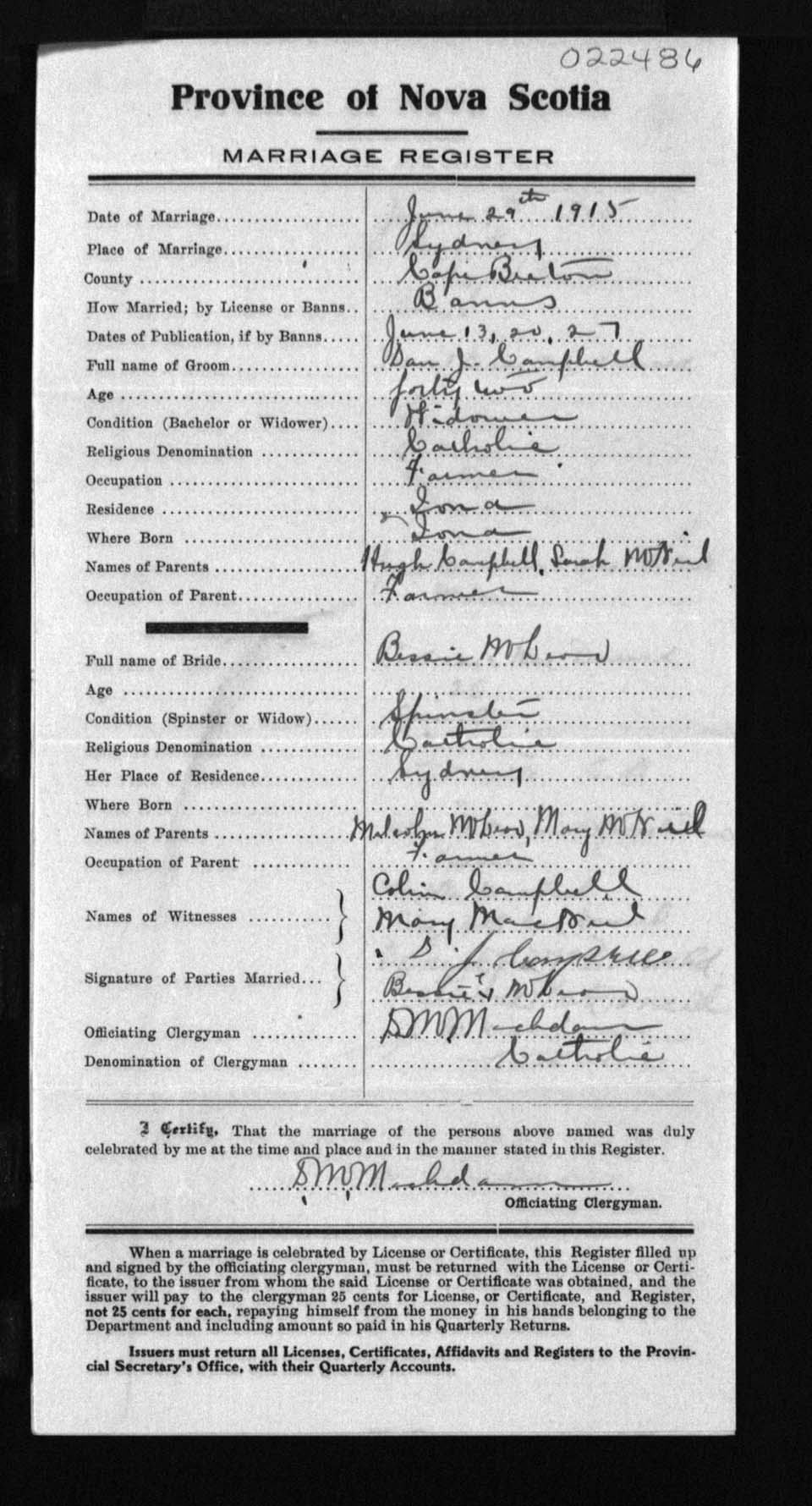 Registration: Year: 1915 number: 22486