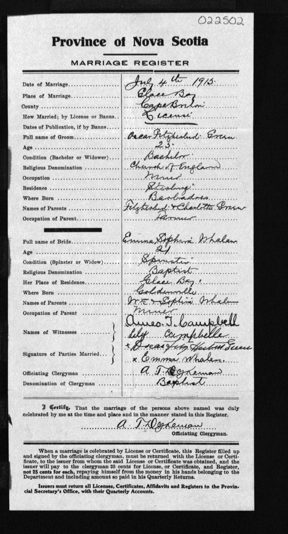 Registration: Year: 1915 number: 22502