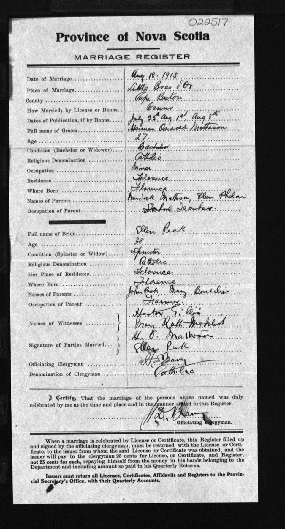 Registration: Year: 1915 number: 22517