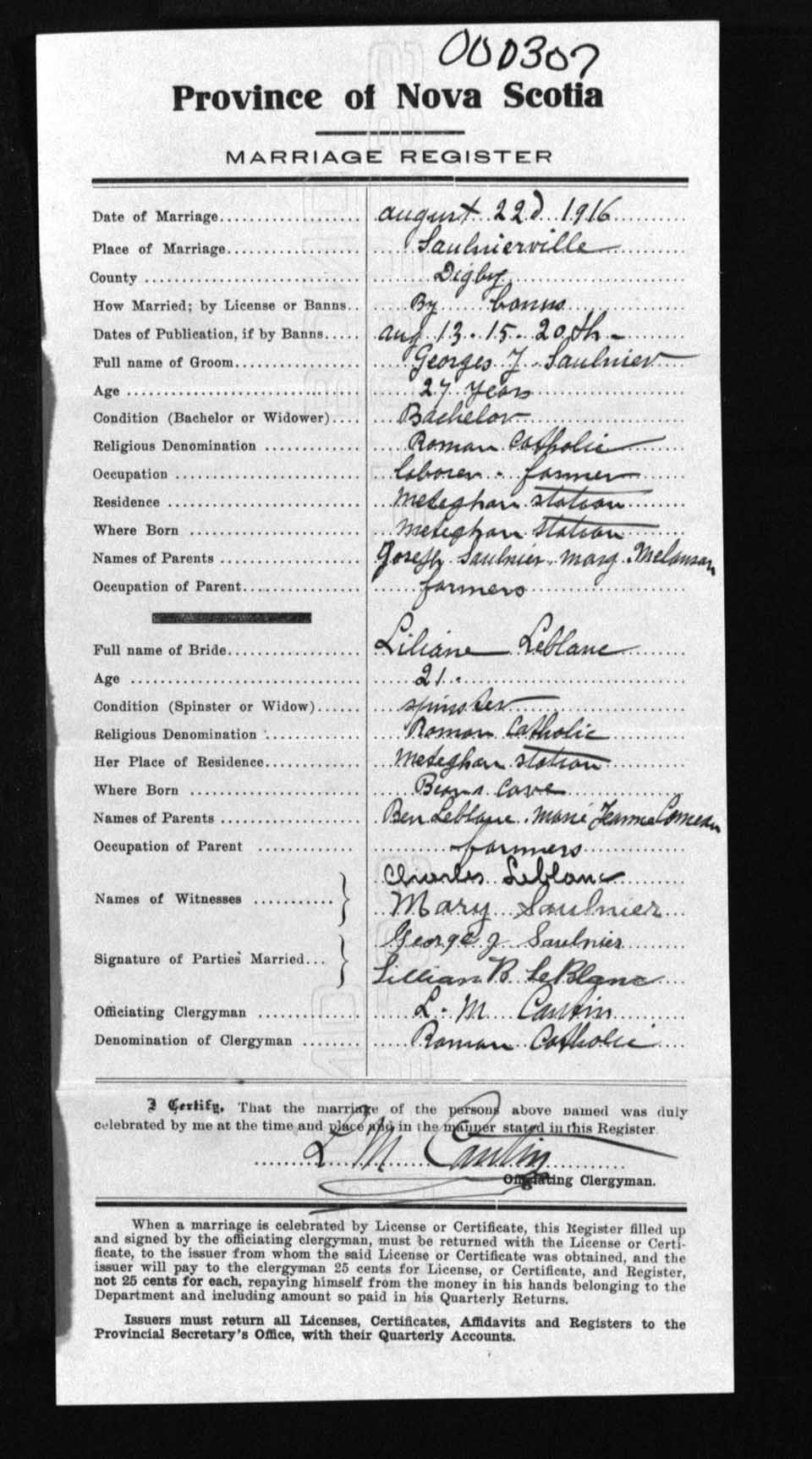 Registration: Year: 1916 number: 0307