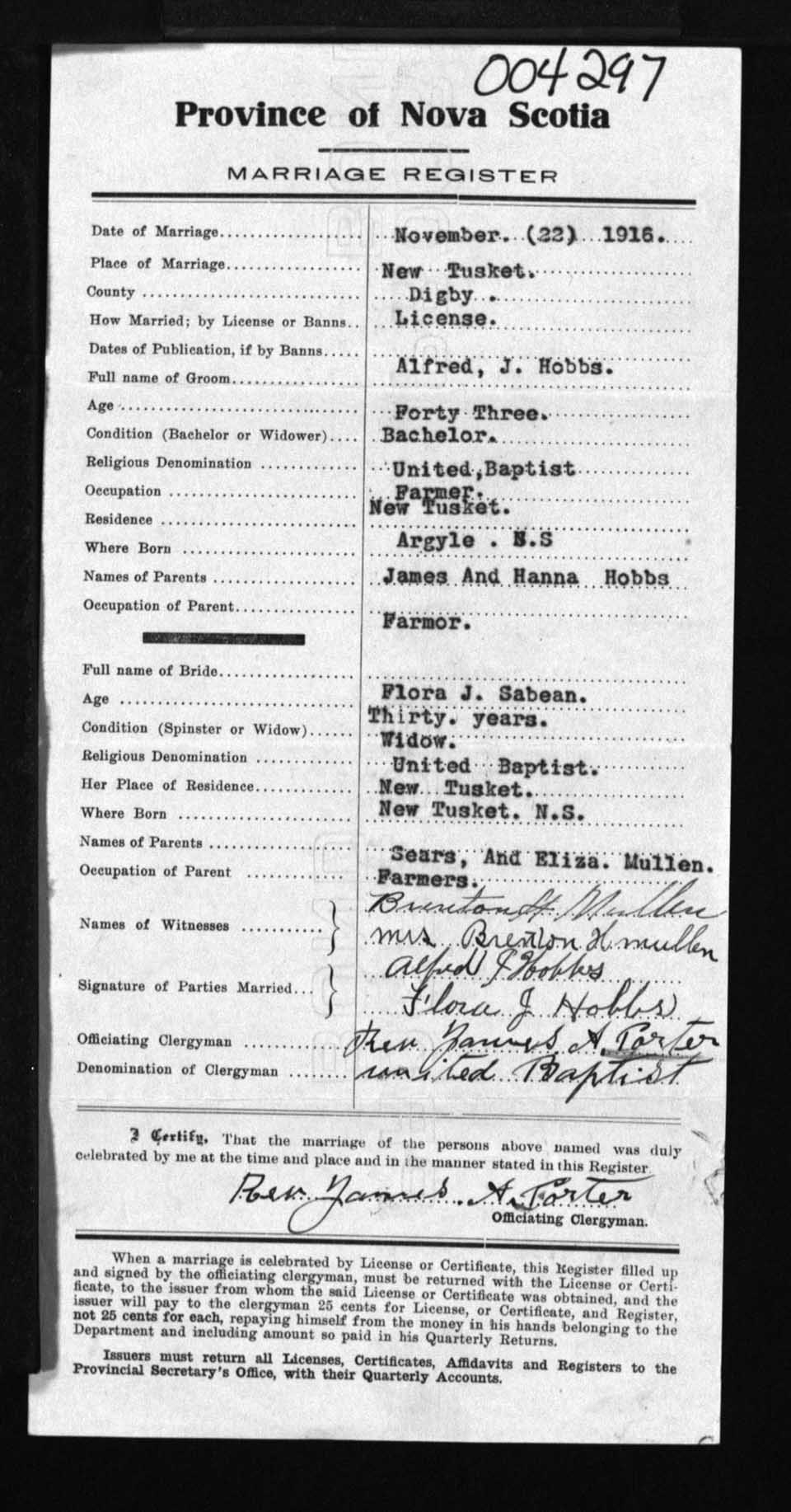 Registration: Year: 1916 number: 4297