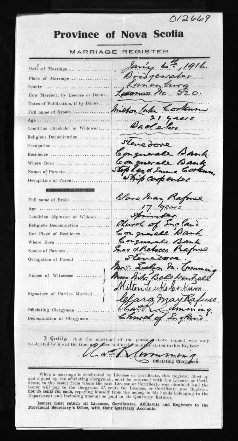 Registration: Year: 1916 number: 12669