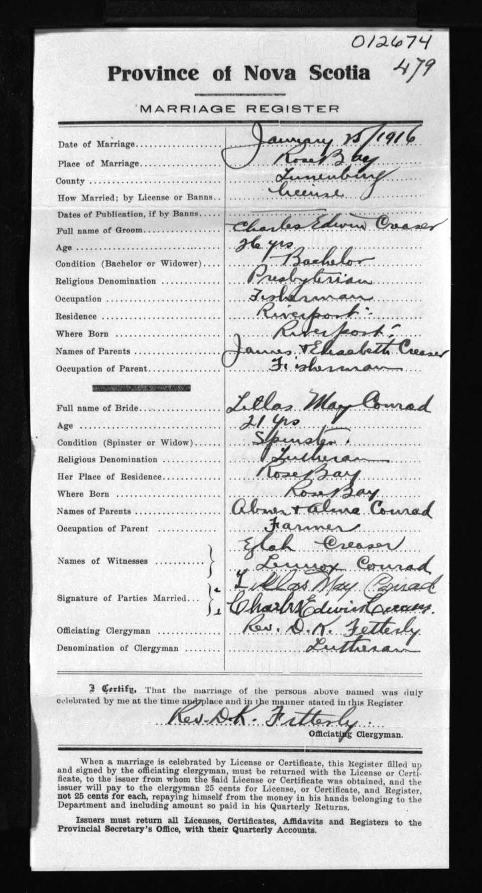 Registration: Year: 1916 number: 12674