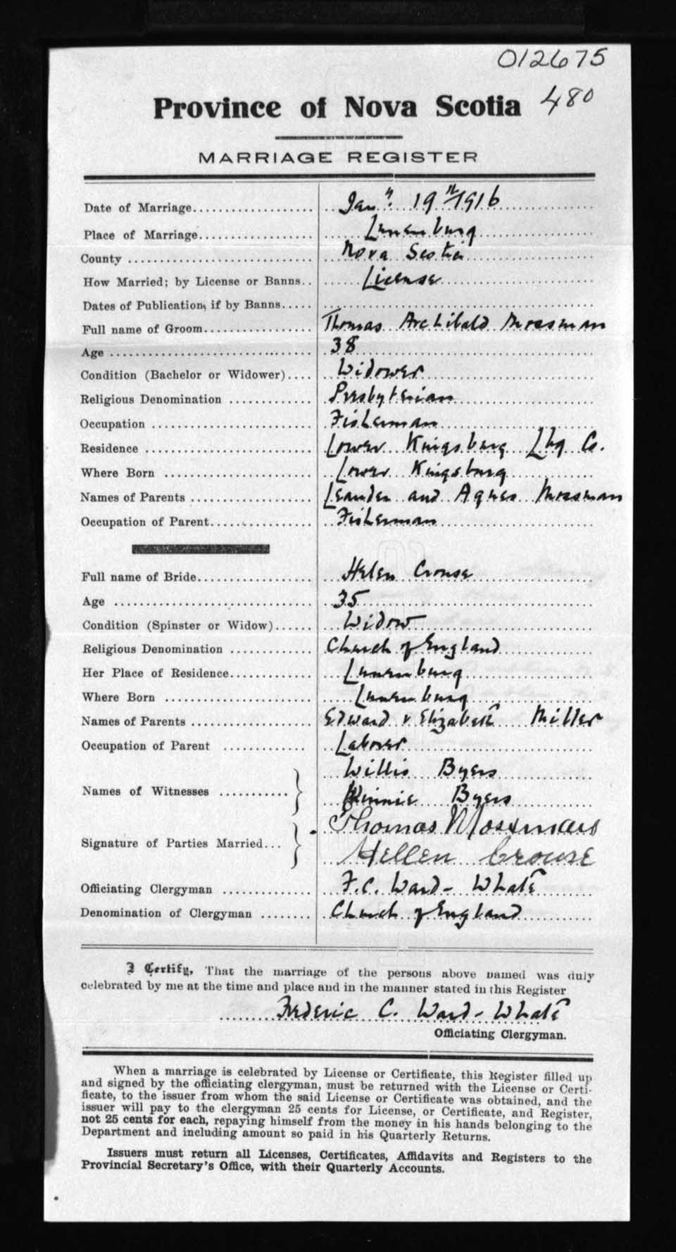 Registration: Year: 1916 number: 12675