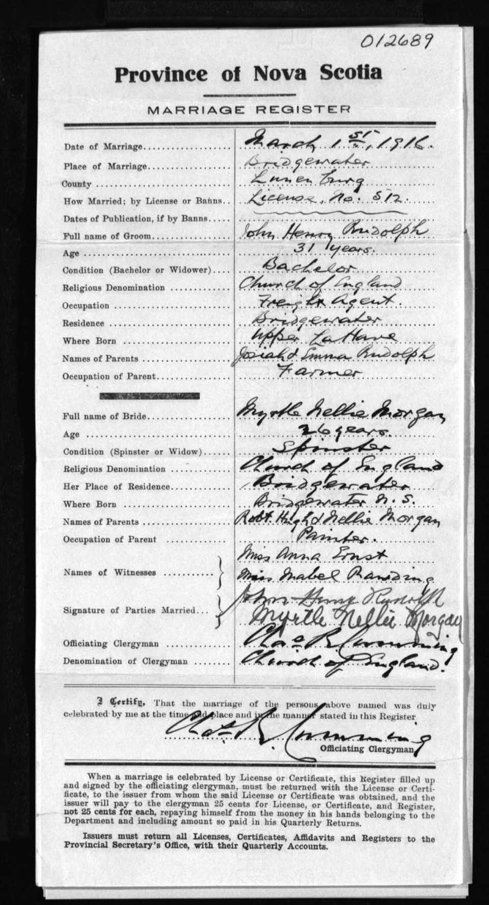Registration: Year: 1916 number: 12689